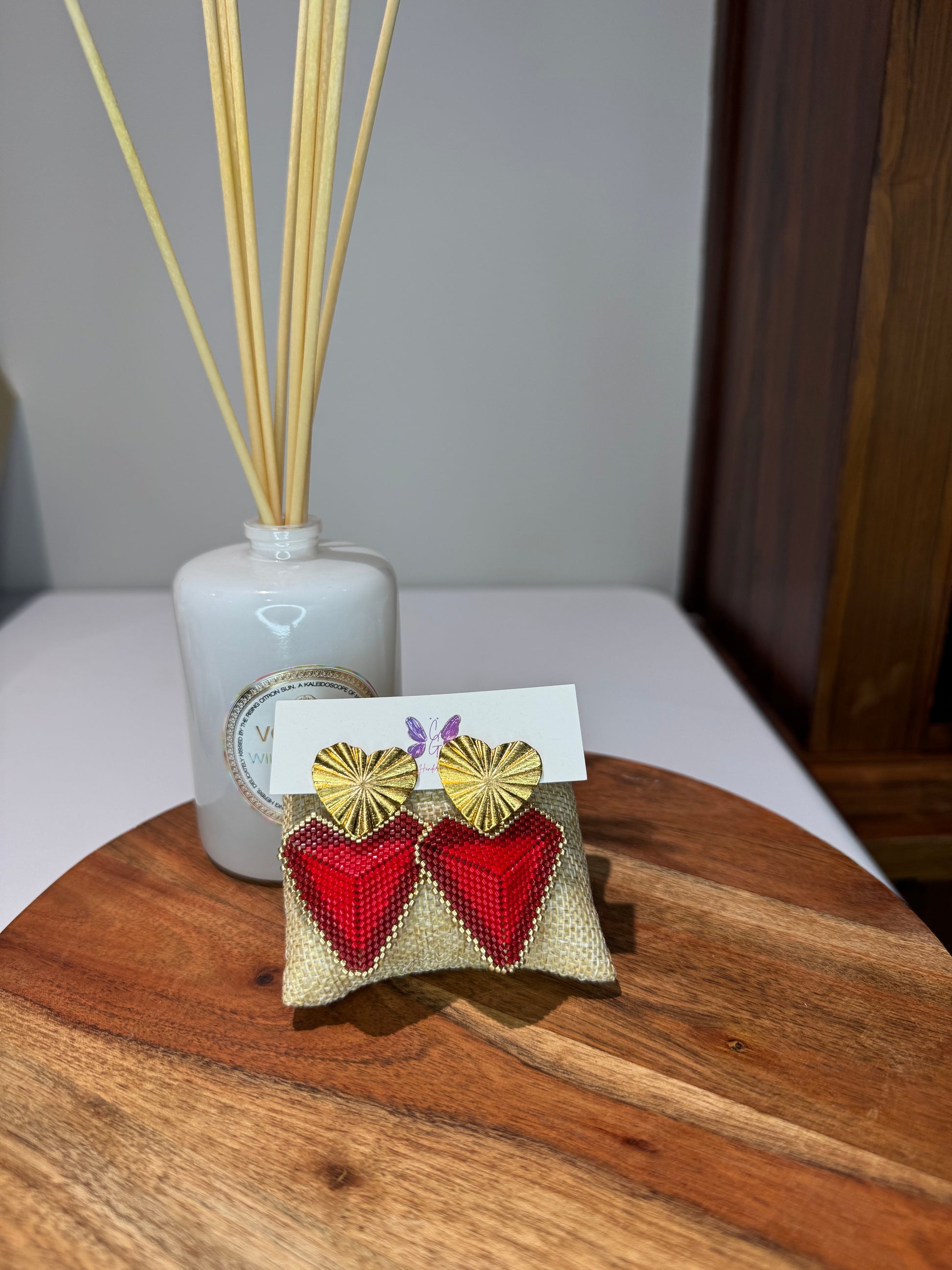 Corazon Espinado earring is a bright red pair, design to enhance your personality! Very light weight due to the nature of its miyuki Japanese beads, and the hardware is made in german silver plated in 24K Gold.