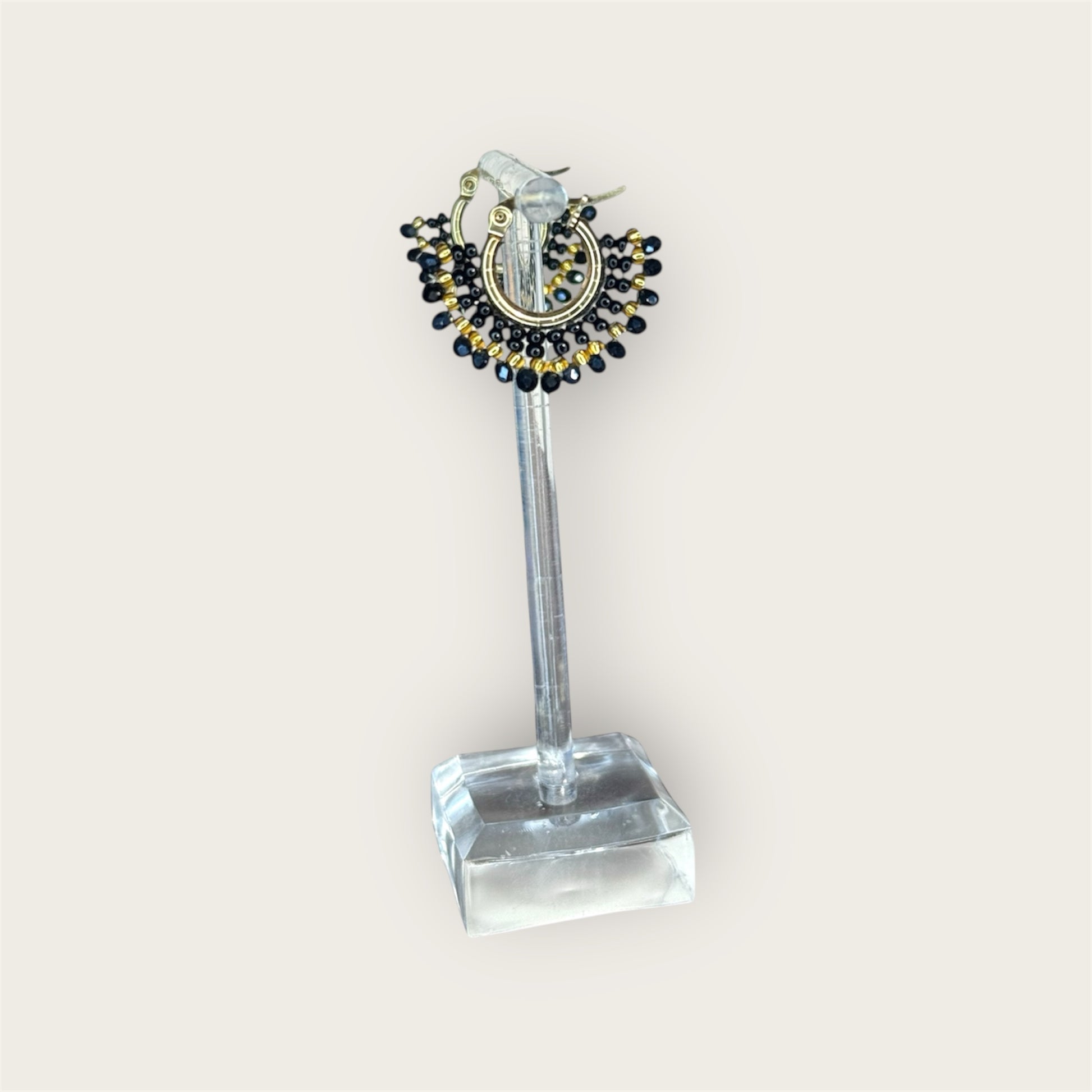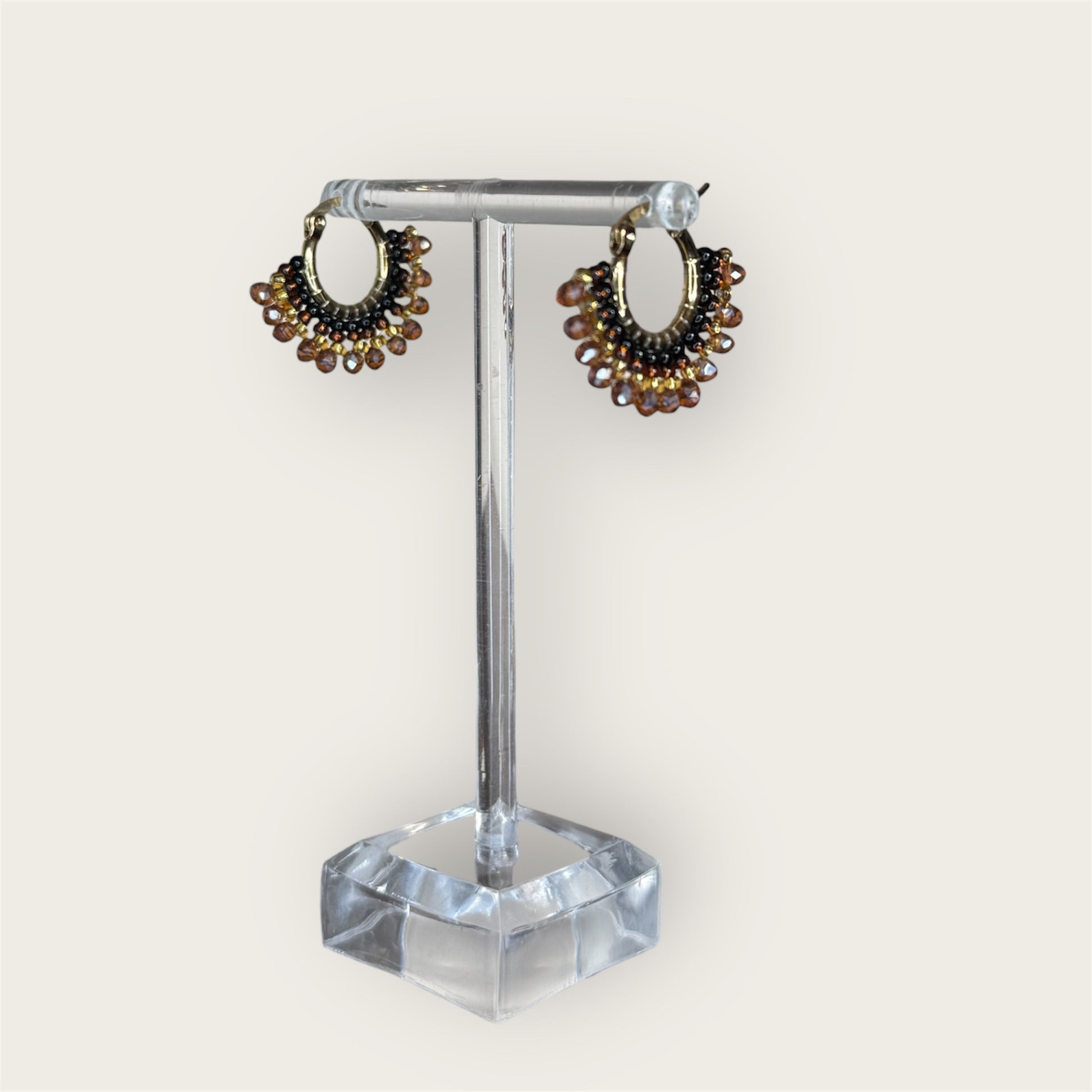 Design inspired in the Nariguera used by Colombian amerindians, these handcrafted hoop earrings deep accents, and soft golden details to create a timeless yet modern statement. Carefully woven bead by bead, they offer beautiful texture and movement while remaining lightweight and comfortable to wear.